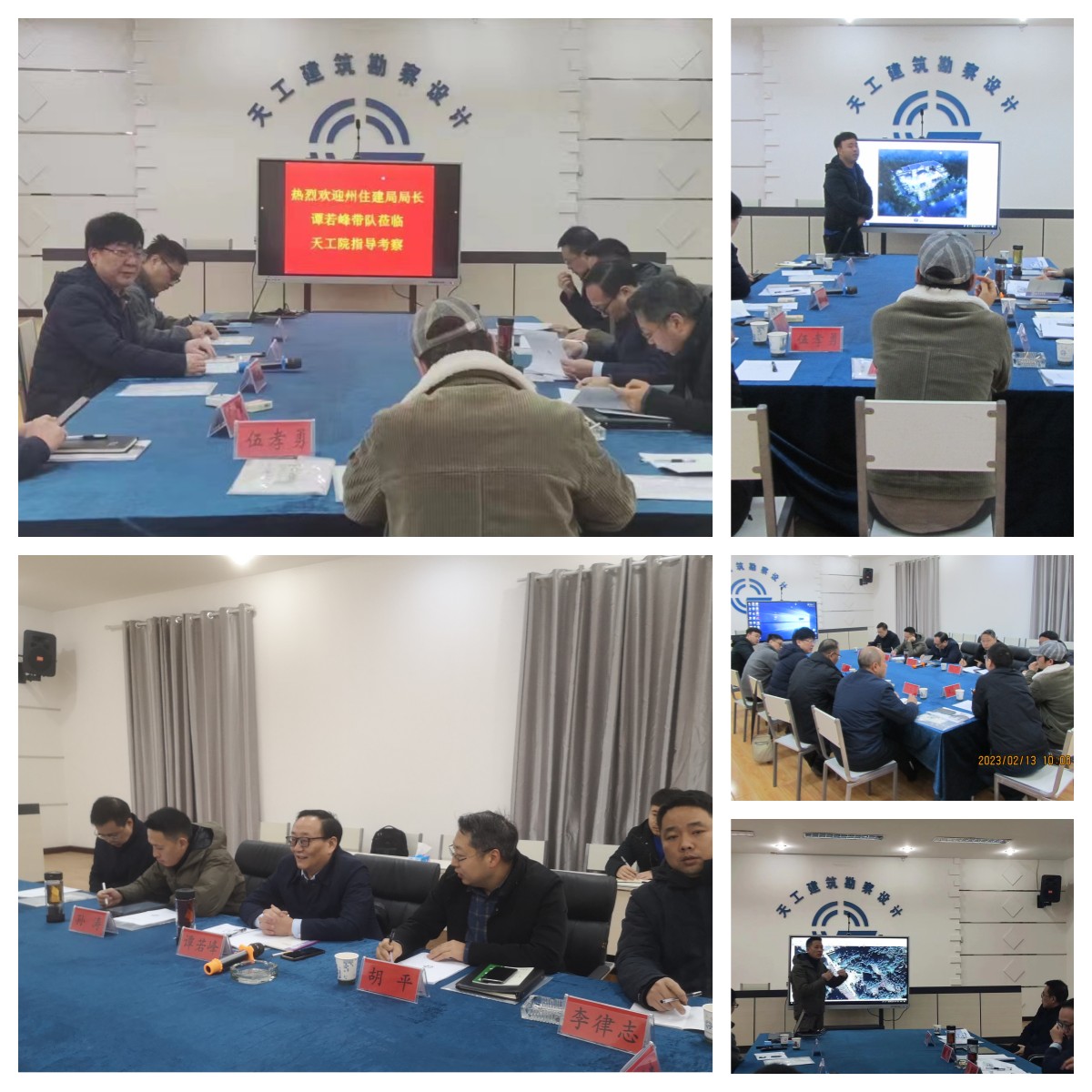 2023年2月13日上午,恩施州住建局局長譚若峰、總工胡平等一行蒞臨華德萊集團旗下的湖北天工建筑勘察設計有限公司(以下簡稱“天工院”)恩施總部考察指導。華德萊集團董事長金會容主持并攜各相關負責人參會。