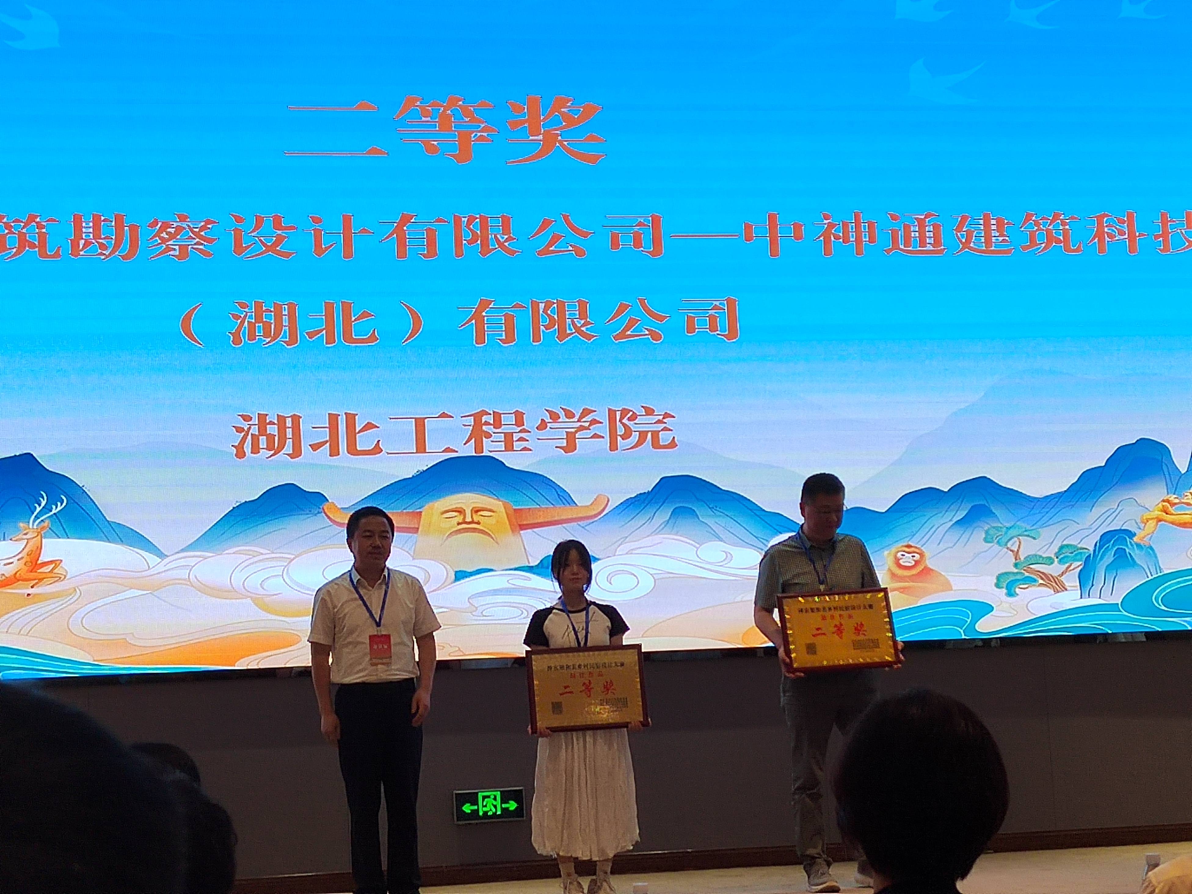 湖北天工建筑勘察設計有限公司(以下簡稱“天工設計院”)聯合中神通建筑科技(湖北)有限公司創作的“車載移動式智能裝配低能耗和美鄉墅”榮獲二等獎。天工設計院院長車誼,主要創作成員田間、屈代亮等參加頒獎儀式。