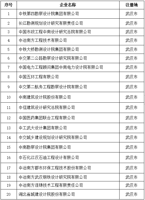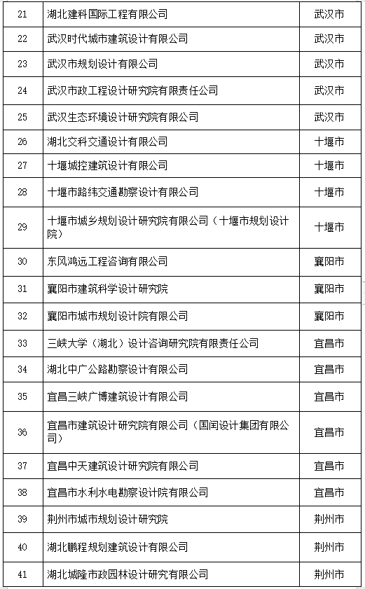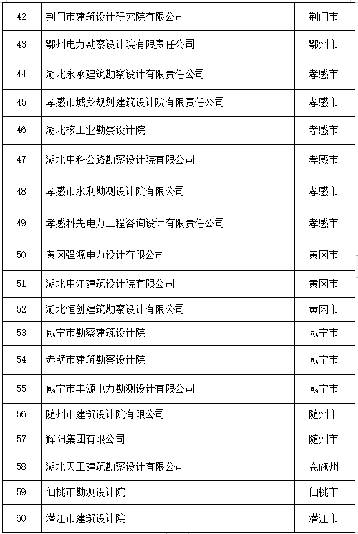 湖北省工程設(shè)計(jì)和施工雙資質(zhì)重點(diǎn)培育企業(yè)名單