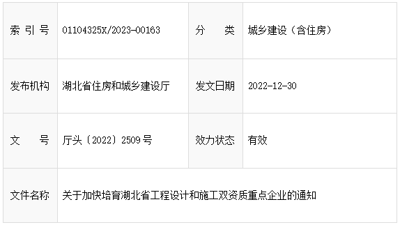 [轉(zhuǎn)載湖北省住房和城鄉(xiāng)建設(shè)廳網(wǎng)]關(guān)于加快培育湖北省工程設(shè)計(jì)和施工雙資質(zhì)重點(diǎn)企業(yè)的通知